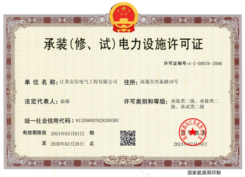 在創(chuàng)業(yè)之初,公司就堅(jiān)持高起點(diǎn)的戰(zhàn)略思路,廣納賢才,集聚行業(yè)精英,創(chuàng)新發(fā)展,做優(yōu)企業(yè)品牌?,F(xiàn)已取得:承裝二級(jí)、承修二級(jí)、承試二級(jí),電力工程施工總承包二級(jí),輸變電工程專(zhuān)業(yè)承包二級(jí),建筑工程施工總承包二級(jí),建筑機(jī)電安裝專(zhuān)業(yè)承包二級(jí),地基基礎(chǔ)專(zhuān)業(yè)承包二級(jí)資質(zhì)證書(shū),并通過(guò)了質(zhì)量、環(huán)境、職業(yè)健康和安全管理體系認(rèn)證,確保各項(xiàng)工作有序管控。